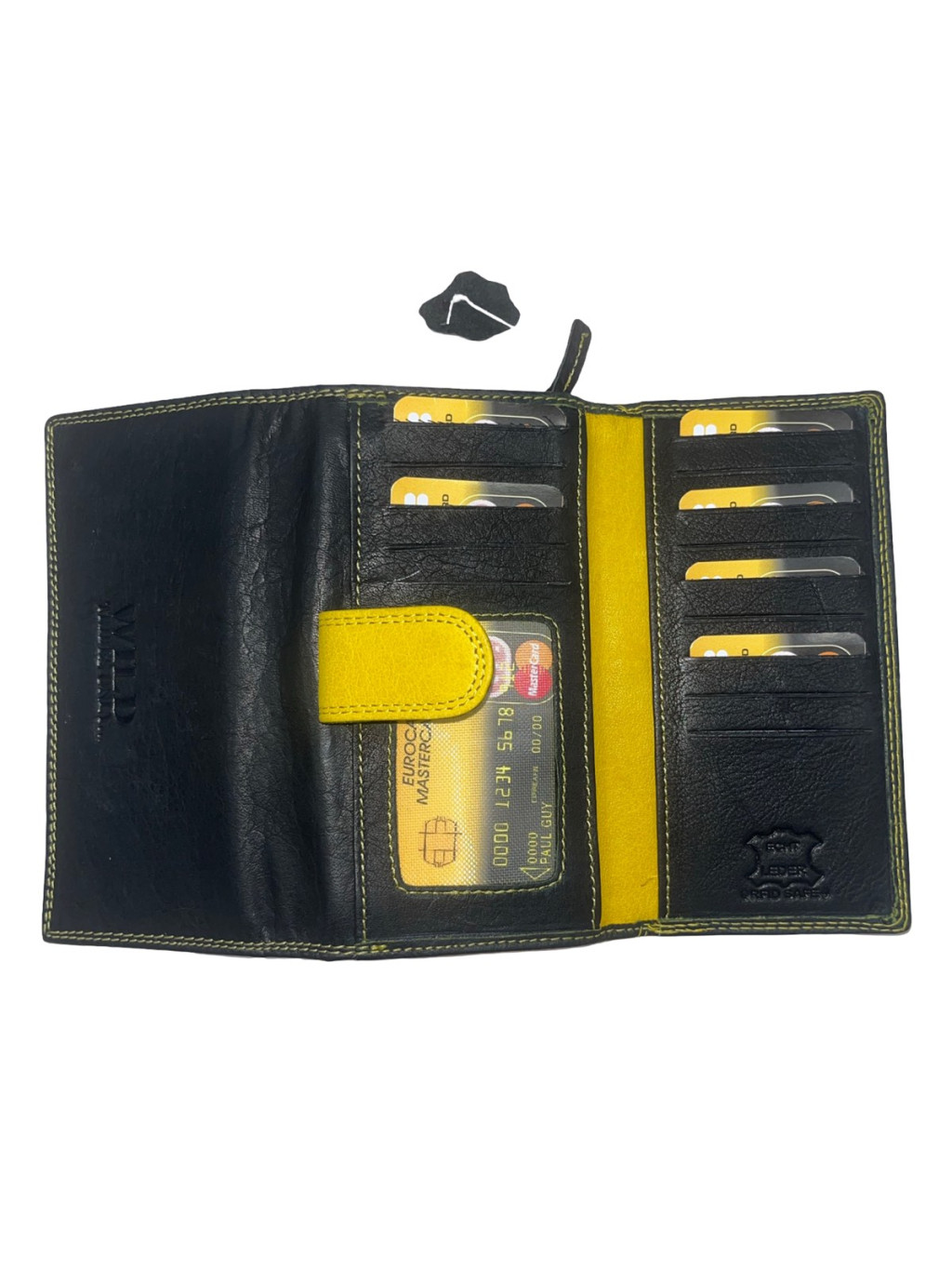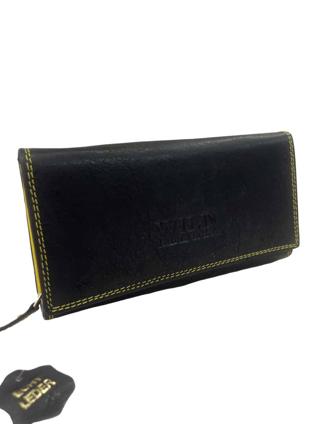 A Wild Eleganza Fekete női pénztárca letisztult megjelenésével és prémium minőségével ideális választás a mindennapokra. A valódi bőrből készült külső klasszikus fekete színe időtálló eleganciát sugároz, amely könnyedén illeszkedik bármilyen stílushoz – legyen szó hétköznapi használatról vagy elegánsabb alkalmakról.